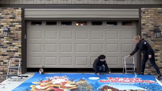 Then, hook the elastic bands to the second hinge behind your garage door, and voilร ! Youโre ready to show off aย festive garage door coverย that instantly spreads holiday cheer.